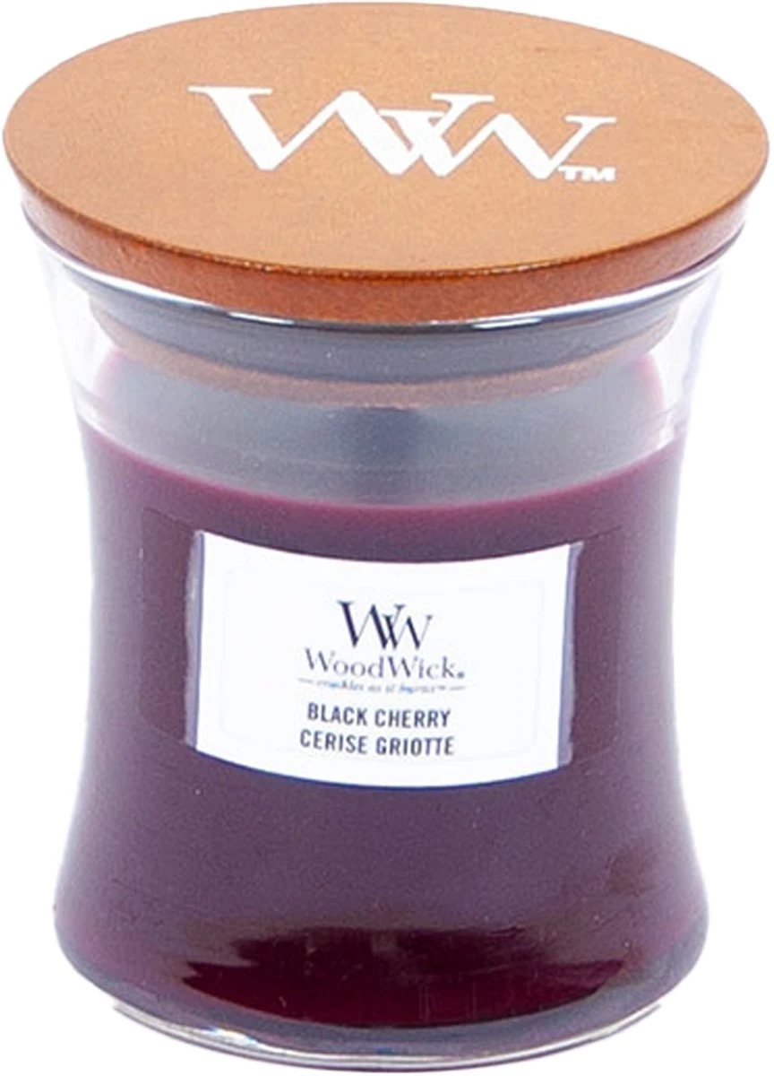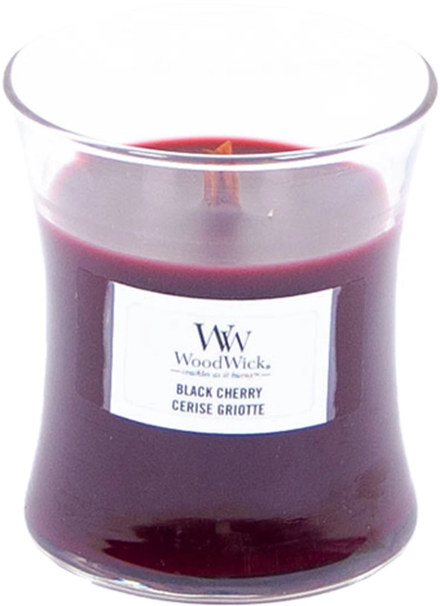 Een prachtige Woodwick kaars voor in je interieur met een heerlijke zoete geur van sappige en zwarte kersen. Verwen jezelf en laat je verrassen door deze overheerlijke geur!Details van de Woodwick Black Cherry geurkaars: – 1 Lont – Een heerlijk knapperend geluid door de speciale lont- 20 branduren