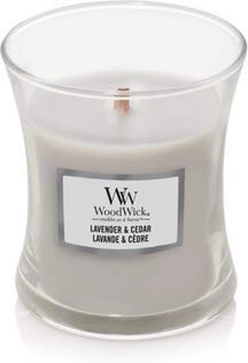 Aroma’s van roze peper en lavendel worden in WoodWick Lavender & Cedar gecombineerd met tonen van saliebloem, patchouli en blond hout. Daarnaast geeft de houten lont een rustgevend knisperend geluid, alsof de haard aanstaat. Time to relax. Met deze WoodWickgeurkaars geniet je ongeveer 20 branduren van een heerlijk geurende kaars, die alle zintuigen prikkelt.