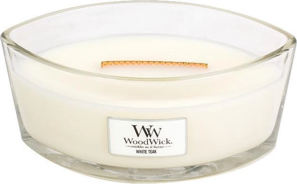 Deze geurkaars geeft door zijn brede houten lont een brede vlam en een zacht knapperend geluid zoals een open haard.