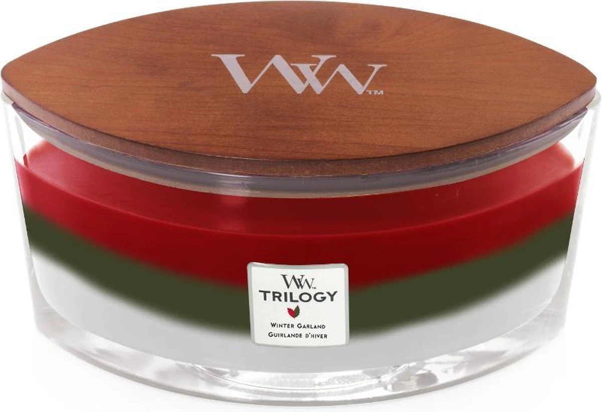 WoodWick Trilogy Winter garland Candle met houten deksel/onderzetter.