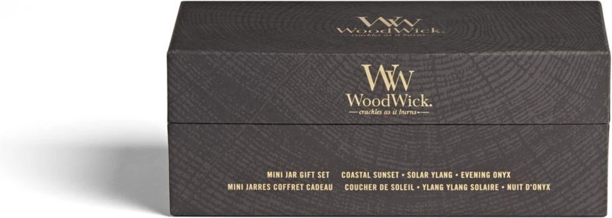 WoodWick biedt een elegante geschenkoptie voor elke gelegenheid. Een onderscheidend patroon en satijnen linten creëren een verfijnde esthetiek en verwijzen naar de luxe beleving van de WoodWick geurkaarsen.