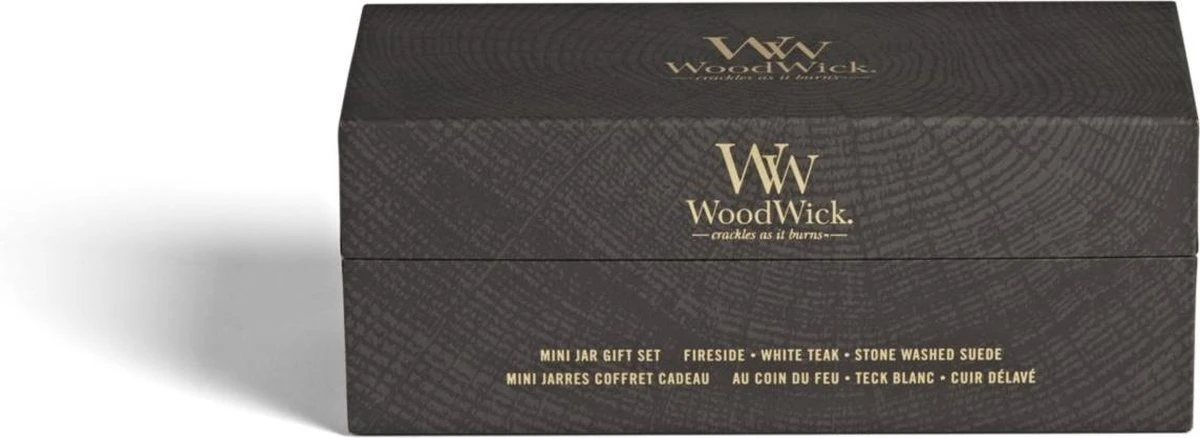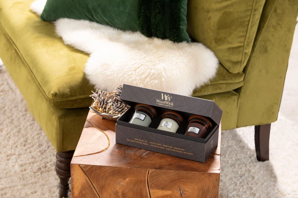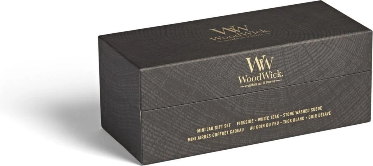 WoodWick biedt een elegante geschenkoptie voor elke gelegenheid. Een onderscheidend patroon en satijnen linten creëren een verfijnde esthetiek en verwijzen naar de luxe beleving van de WoodWick geurkaarsen.