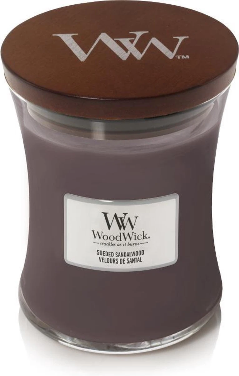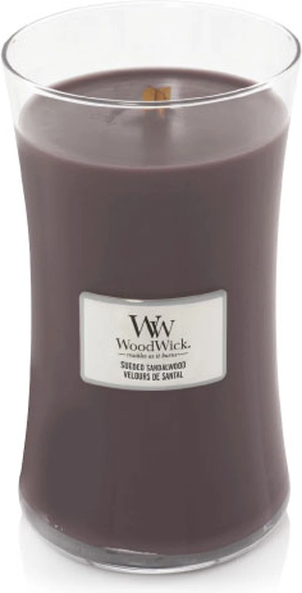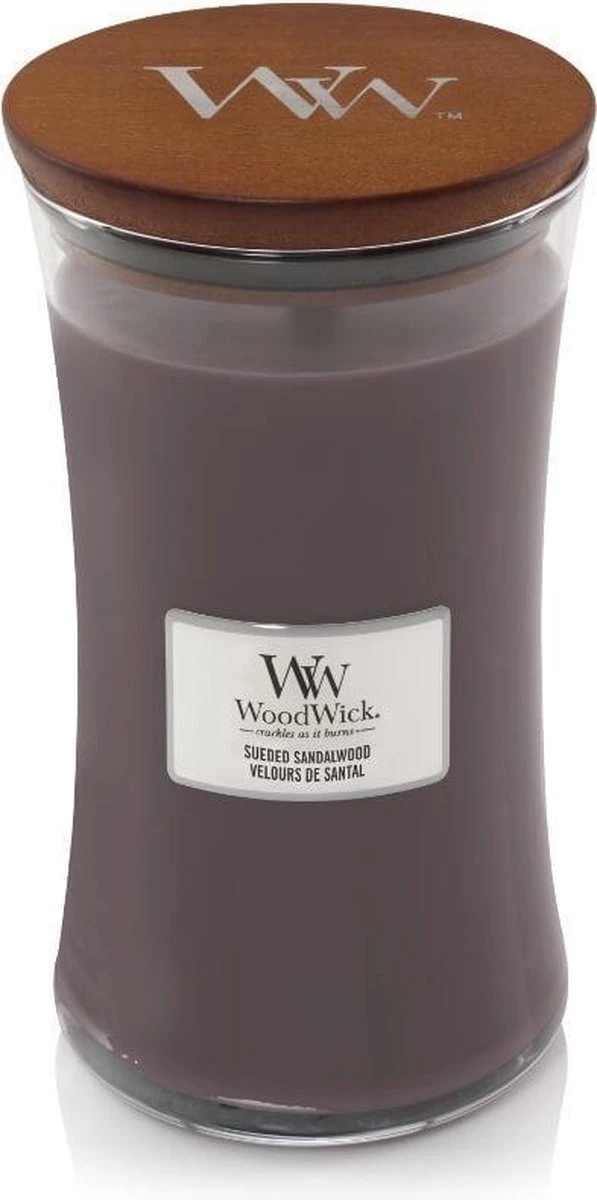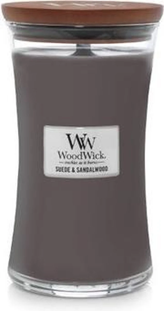 Met de Woodwick grote Sueded Sandalwood kaars haal je de geur van Ylang-Ylang, vanille en suede in huis. Deze geuren worden omhuld door een laag melkachtig sandelhout. Geniet van deze heerlijke rijke geur en relax.