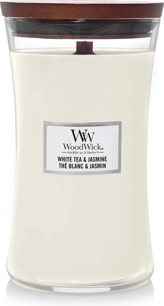 WoodWick Hourglass Large Geurkaars – White Tea & Jasmine