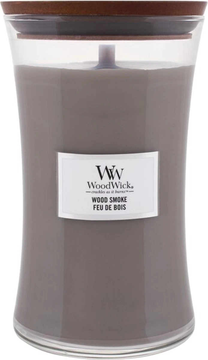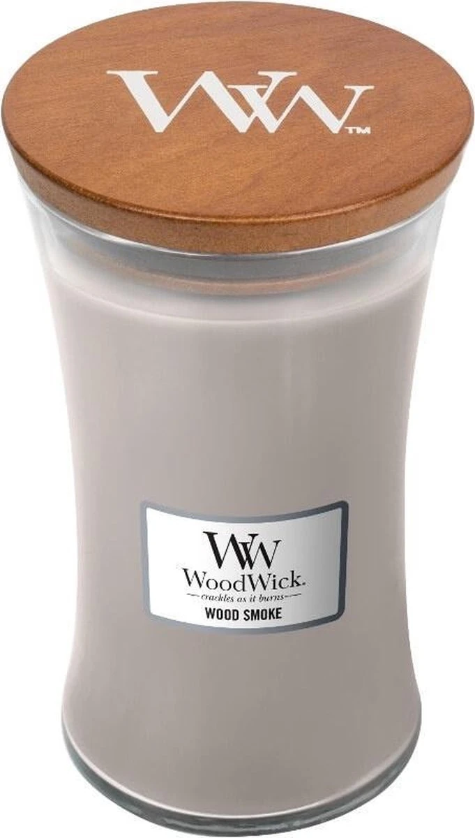 Met de grote Woodwick Wood Smoke kaars haal je de nostalgische geuren van ceder en gloeiende amber in huis. Maak het jezelf comfortabel en geniet van de geur en geluid van een knisperend haardvuur.