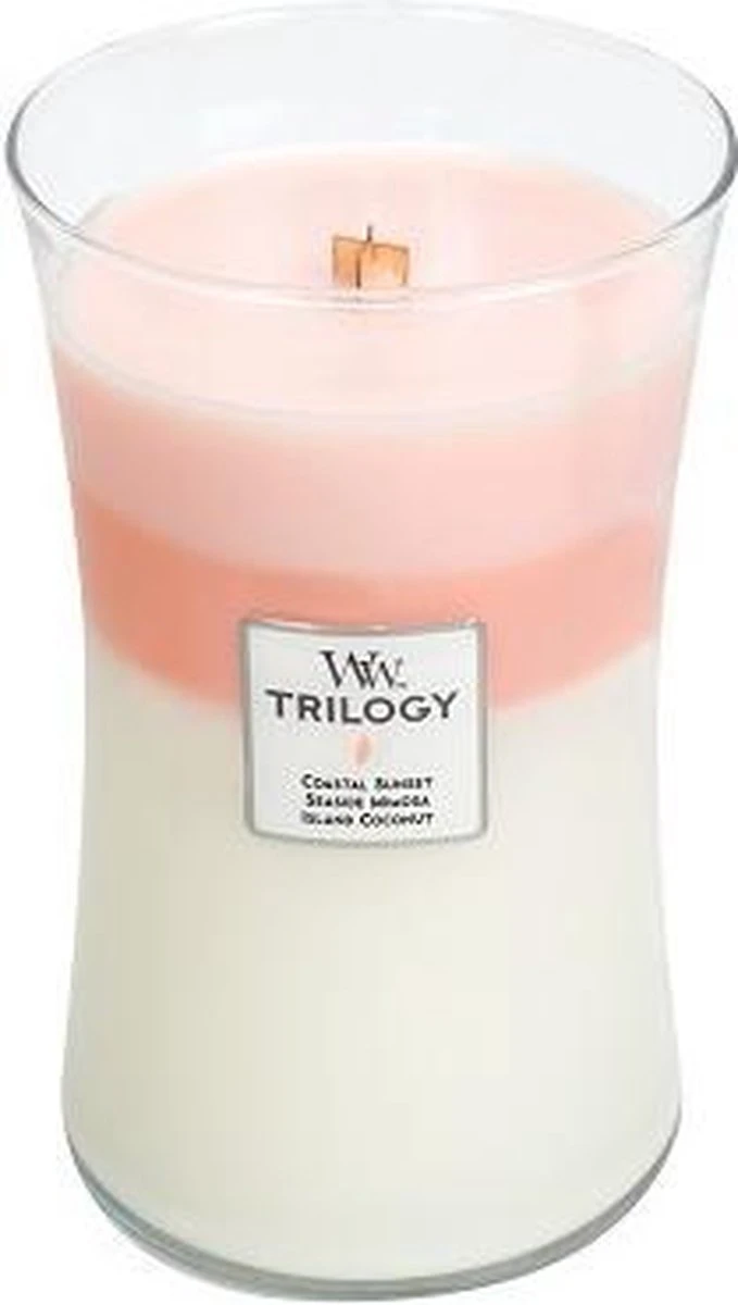 Stel je voor: na een lange dag kom je thuis, ploft op de bank en steekt de kaarsen aan voor wat extra gezelligheid. Wie wil er dan niet een heerlijke, huiselijke geur ruiken zodra de kaarsen aan het branden zijn? Geniet van een trilogy van de geuren Coastal Sunset, Seaside Mimosa en Island Coconut. De houten lont geeft een rustgevend knisperend geluid, alsof de haard aanstaat. Time to relax. Met deze WoodWick geurkaars geniet je ongeveer 130 branduren van een heerlijk geurende kaars, die alle zintuigen prikkelt.