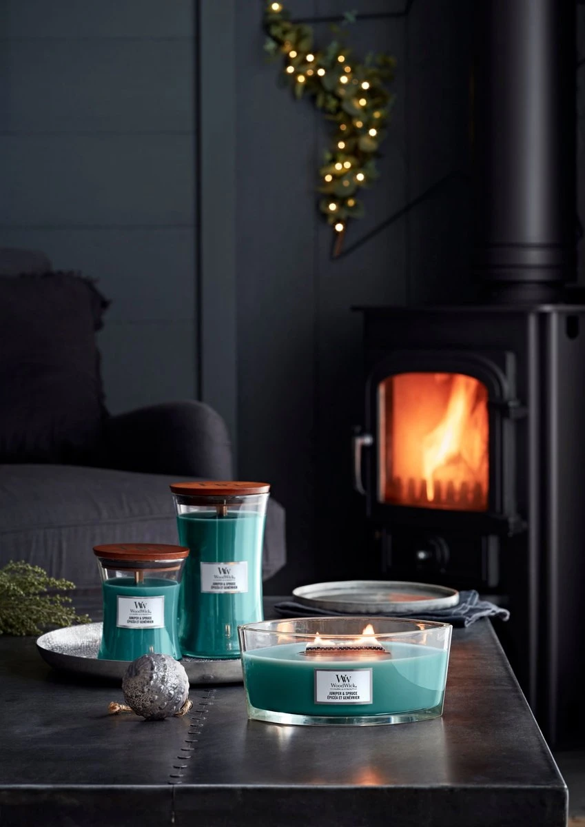 WoodWick Hourglass Large Geurkaars - Juniper & Spruce